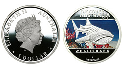Серебро. 1,0 oz. 0,999. 31,14 г. "Китовая акула". Цветная эмаль. KM#1710. В оригинальной капсуле.