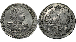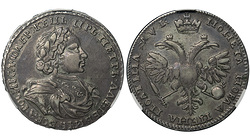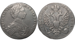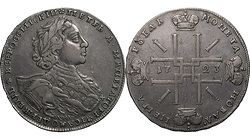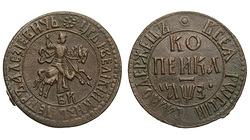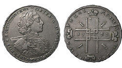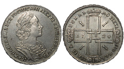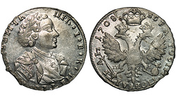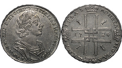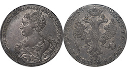 Чрезвычайно важная пробная монета. Единственный известный экземпляр в частных руках (второй экземпляр находится в собрании Эрмитажа).