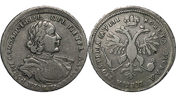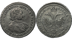 Использование русских серебряных копеек для ведения тяжёлой войны было невозможным даже чисто технически, с учётом их малой номинальной стоимости. Кроме того, навязывание непривычных для этих мест российских копеек могло быть расценено как ущемление местного населения. Требовалось создать новое, современное, понятное для этих территорий платёжное средство, к тому же пригодное для проведения крупных денежных расчётов. Но реальность была такова, что до это времени в России, не имевшей собственного серебра, чеканились только мелкие серебряные копейки сырьём для которых служили западноевропейские талеры. Крупные монеты не чеканились вообще.