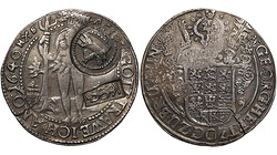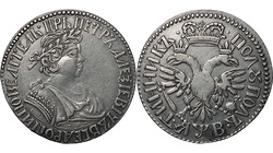 Монета отчеканена той же парой штемпелей, что и один из рублевиков 1654 г. из собрания Эрмитажа, поступивший в музей в 1917 г. в составе нумизматической коллекции графа И.И. Толстого (Спасский «Талеры в русском денежном обращении 1654-1659 годов», табл. III, рис. 32). И.Г. Спасский при разработке систематизации рублевиков царя Алексея Михайловича отнес эту монету к типу 3, известному в единственном экземпляре, однако без какой-либо его привязки к хронологии событий, происходивших в 1654 г. Между тем, имеются все основания полагать, что рублевики этой группы относятся к начальному, наименее организованному этапу производства.