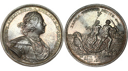 Штемпель аверса представленной медали изготовил Иоганн Бальтазар Гасс (1730-1813), немецкий медальер. В 1772 году принят в службу на правах чиновника с жалованьем 1200 рублей в год, в 1773 – пожалован званием Императорского медальера, а до этого работал на Санкт-Петербургском монетном дворе по контракту. Между прочим, в 1768 году Гасс изготавливал «секретные штемпели». Имеется в виду подделка голландских дукатов (лобанчиков), которые с завидной невозмутимостью чеканили в России вплоть до царствования Александра II.