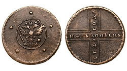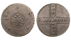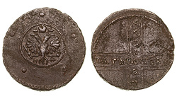 Редкая. Дьяков № 175 (R1), ГМ 18.6, Биткин R, №800 стр.97, Уздеников №0485, Петров - 6 рублей.