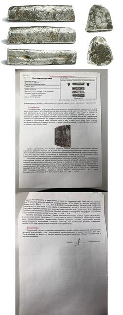 Россия. Платежный слиток "закамского" серебра XI-XIV вв. С заключением.