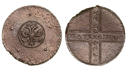 Сузунский монетный двор. Гурт - надпись: "КОЛЫВАНСКАЯ МЕДЬ" Биткин R1, №1012 стр.691, Уздеников редкость - "точка", №4247, Петров - 6 рублей, Ильин - 3 рубля.