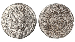 Очень редкая. Легенда аверса "МОН. МОЛД. И ВАЛАК". Монетный двор в Садогуре. Биткин редкость - R2, №1254 стр.698, Уздеников №4906 (редкость - "точка). Ильин - 15 рублей.