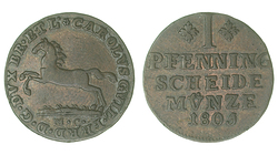 Германия. Брауншвейг-Вольфенбюттель. Карл Вильгельм Фердинанд. 1 пфенниг 1805 года.
