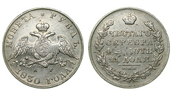 Екатеринбургский монетный двор, без обозначения. Биткин R1, №513 стр.588, Уздеников №2600, Петров - 3 рубля, Ильин - 1 рубль.