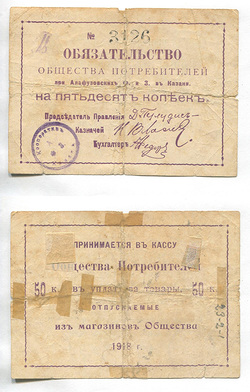 Семипалатинск. Общество потребителей. Расчетная членская марка. 1 руб. Рябч.2 № 20716 # 1662