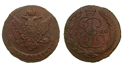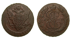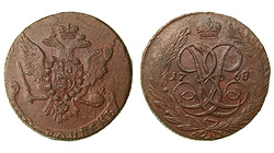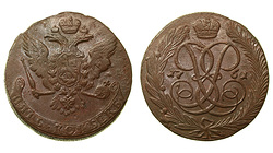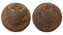 Россия. 5 копеек 1765 года. ЕМ. НОВОДЕЛ.
