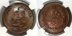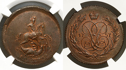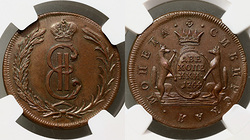 Россия. Сибирь. 2 копейки 1764 года. НОВОДЕЛ. MS63 BN. Top Grade.