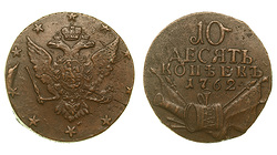 Россия. 10 рублей 1766 года. СПБ ТI.
