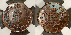 Россия. Сибирь. Полушка 1771 года. КМ. НОВОДЕЛ. MS64 BN.