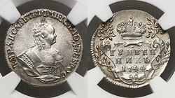Редкий вариант новодела. Чеканена на крестовом пятикопеечнике. Гурт гладкий с опиловкой. Биткин Н1090 R2 стр. 693. В слабе NGC MS63 BN. Только эта монета в NGC имеет Top Grade.