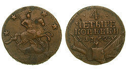 Равномерный штемпельный блеск. Насыщенная серая патина. Кадашевский монетный двор. Биткин №743 R2, стр 90, Уздеников №0451 (редкость - точка). Петров - 30 рублей.