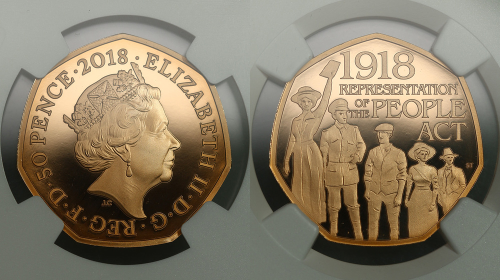 Англия. Елизавета II. 50 пенсов 2018 года. Proof. PF68 ULTRA CAMEO.