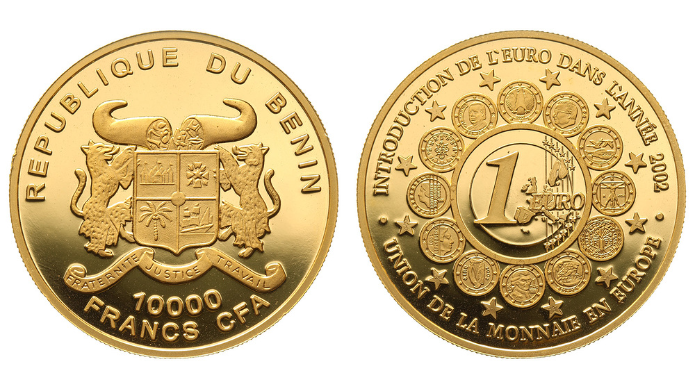 Бенин. 10000 франков КФА 2002 года. Proof.