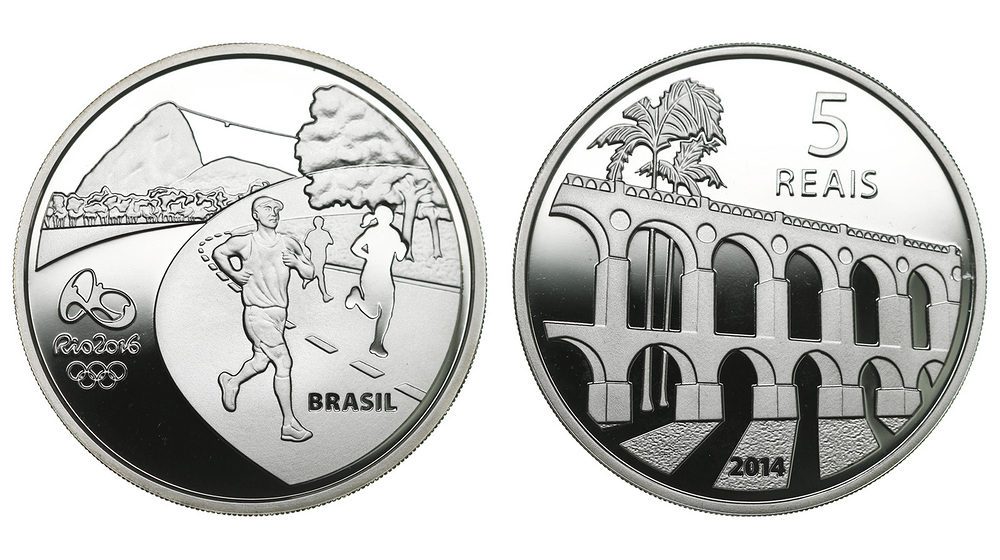 Серебро. 0,803 oz. 0,925, 27,0 г. "Олимпиада в Рио" Бег/Мост. В оригинальной капсуле.