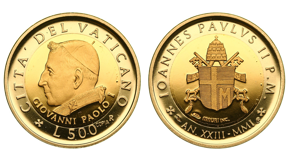 Ватикан. Иоанн Павел II. 500 лир 2001 года. Proof.