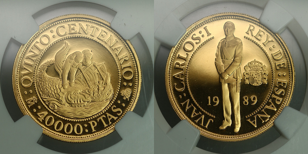 Испания. Хуан Карлос I. 40000 песет 1989 года. Proof. PF66.