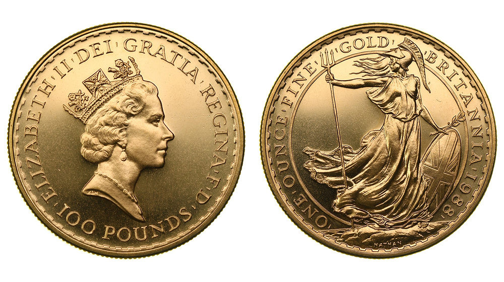 Золото. 1,0 oz. 0,917. 34,05 г. "Британия". KM#953.