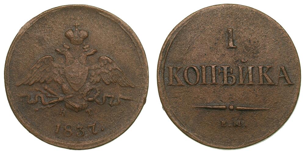 Россия. 1 копейка 1837 года. ЕМ КТ.