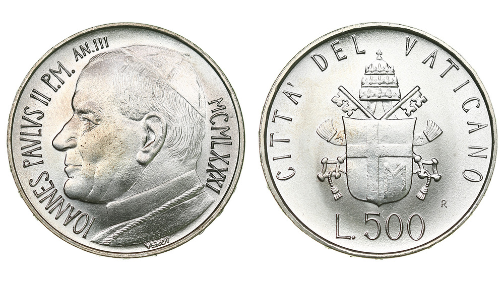 Ватикан. Иоанн Павел II. 500 лир 1981 года.