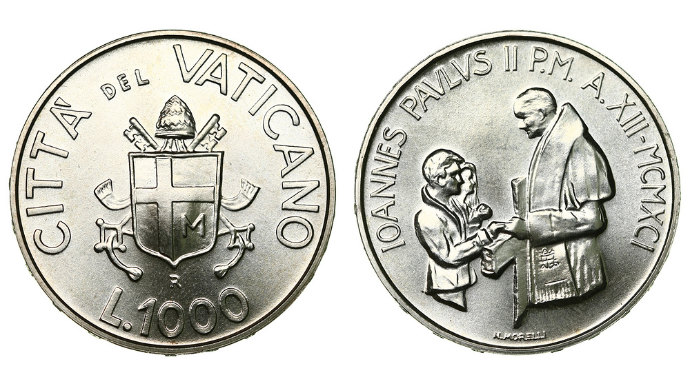 Ватикан. Иоанн Павел II. 1000 лир 1991 года.
