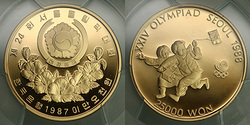 Золото. 0,4999 oz. 0,925. 16,81 г. "Олимпийские игры в Сеуле". КМ#68. В слабе PCGS PR69DCAM