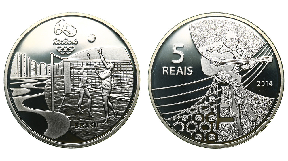 Серебро. 0,803 oz. 0,925, 27,0 г. "Олимпиада в Рио" Волейбол/1 музыкант с гитарой. В оригинальной капсуле.