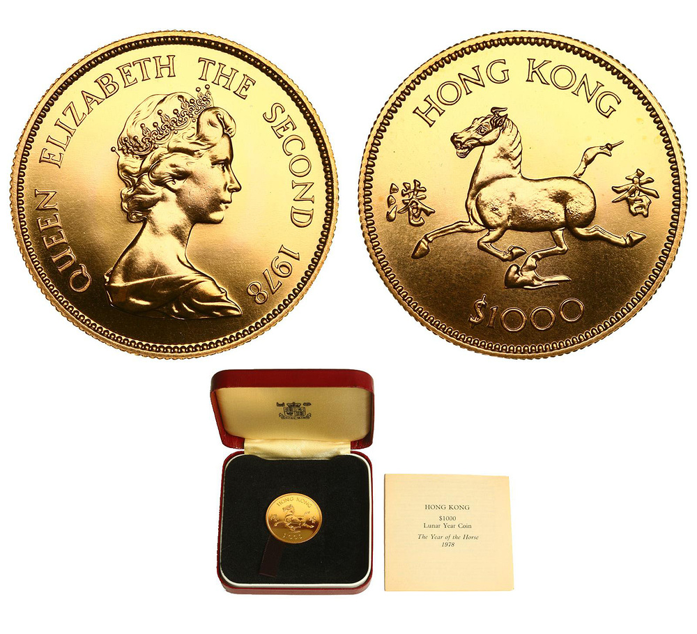 Золото. 0,4708 oz. 0,917. 15,97 г. "Год Лошади". В оригинальной коробке с сертификатом. KM#44.