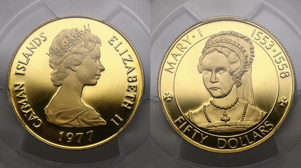 Каймановы о-ва. Елизавета II. 50 долларов 1977 года. Proof. PR67 DCAM.