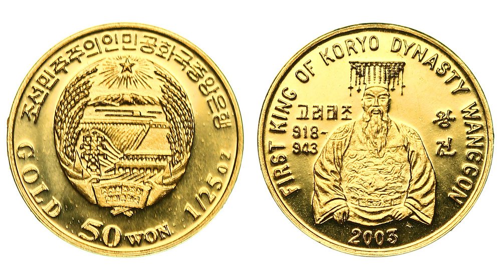 Редкая. Золото. 0,04 oz. 0,999. 1,2441 г. "Ванг Гонг - Первый правитель единой Кореи". В оригинальной капсуле.