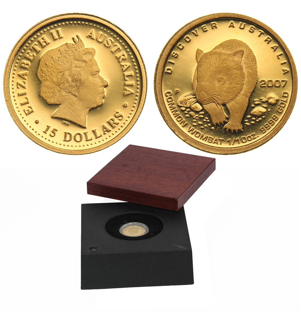 Редкая. Золото. 0,1 oz. 0,999. 3,11 г. "Вомбат". KM#969. В оригинальной коробке.