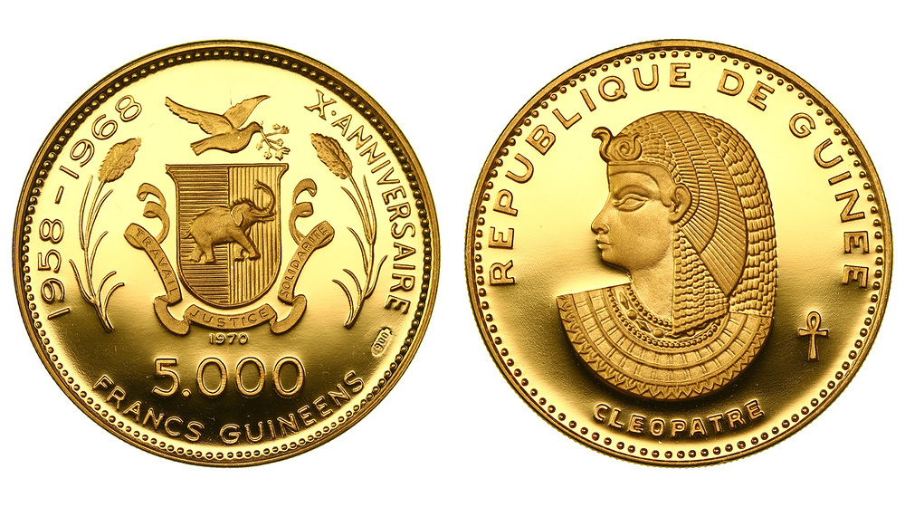 Редкая. Золото. 0,5787 oz. 0,900. 20,0 г. "10-летие Независимости. Царица Клеопатра". Тираж 789 шт. КМ#35.
