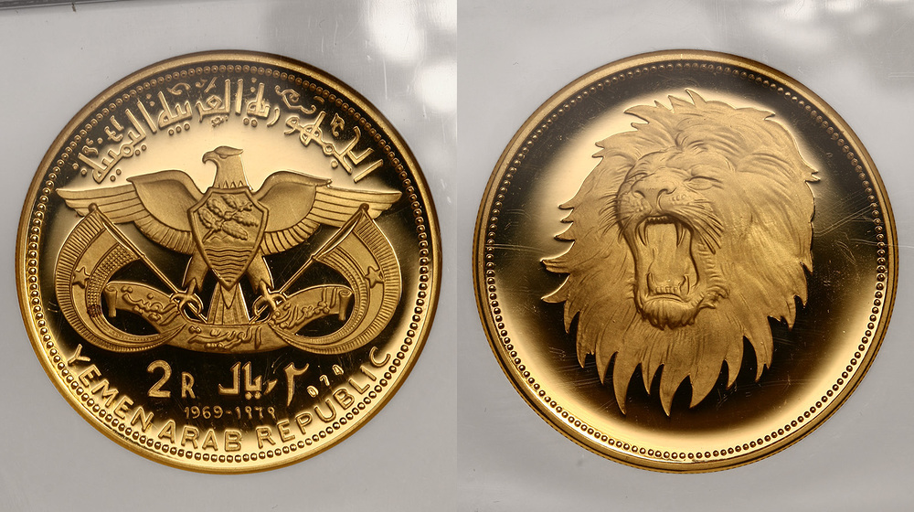 Йемен. 2 риала 1969 года. В слабе NGC PF69 Ultra Cameo. Proof.