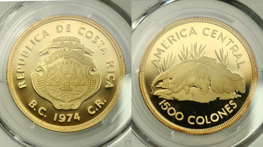 Коста-Рика. 1500 колонов 1974 года. Proof. В слабе PCGS PR67DCAM.