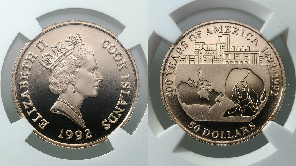 Кука о-ва. Елизавета II. 50 долларов 1993 года. Proof. PF68 Ultra Cameo.