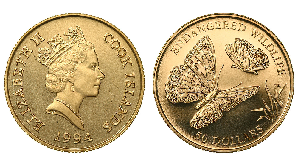Кука о-ва. Елизавета II. 50 долларов 1994 года. Proof.