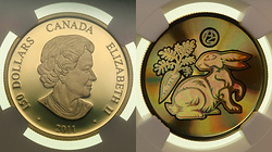 Золото. 1,0 oz. 0,999. 31,1 г. "Год кролика". KM#428.