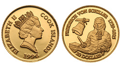 Золото. 0,0392 oz. 0,9999. 1,22 г. "Фридрих Шиллер". KM#475.