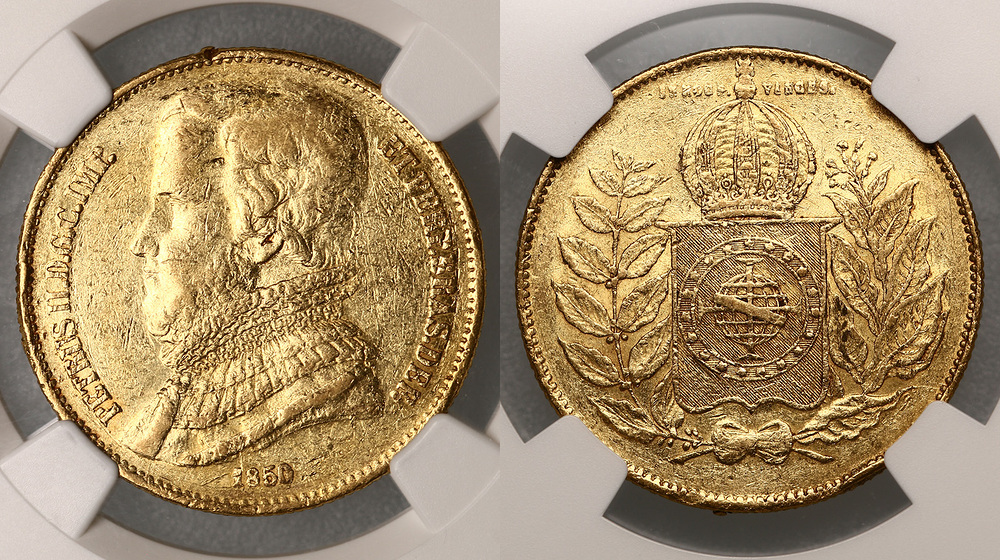 Бразилия. Педру II. 20000 рейс 1850 года. В слабе NGC XF Details.