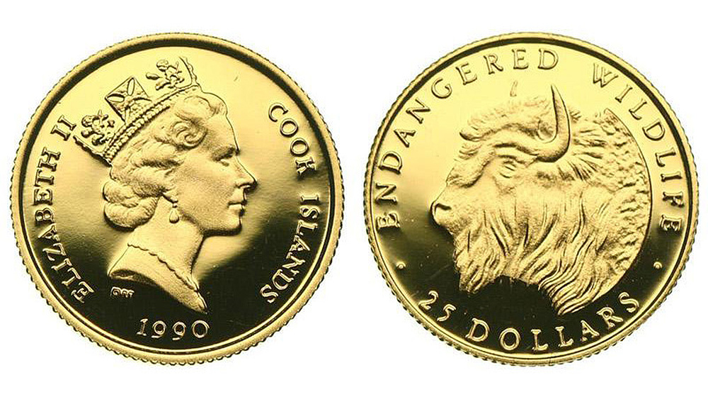 Кука о-ва. Елизавета II. 25 долларов 1990 года. Proof.