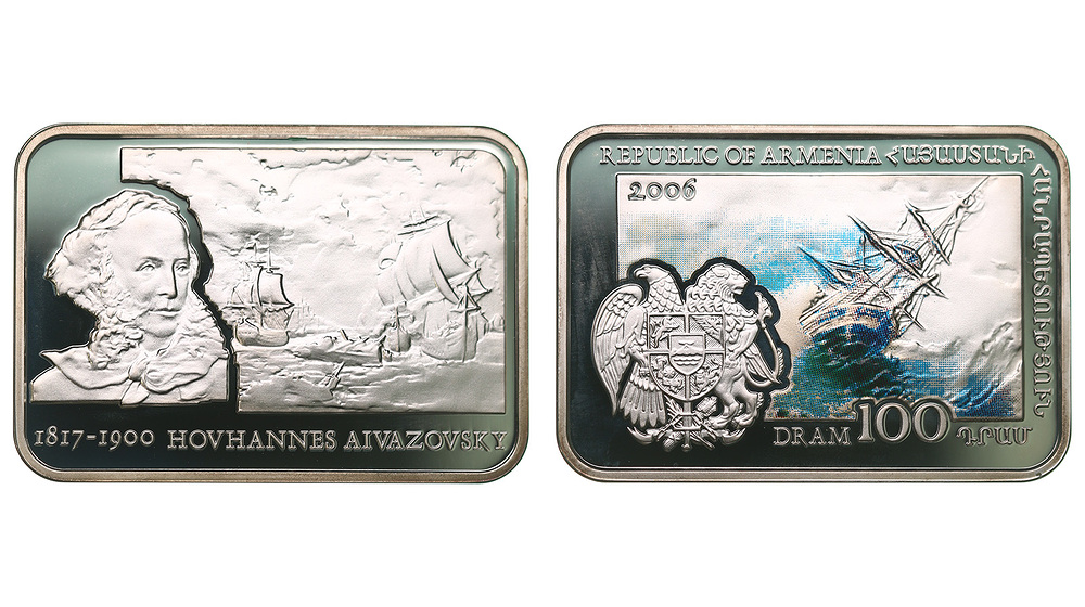 Серебро. 0,841 oz. 0,925, 28,28 г. "Айвазовский". KM#129. В оригинальной капсуле. Следы хранения.