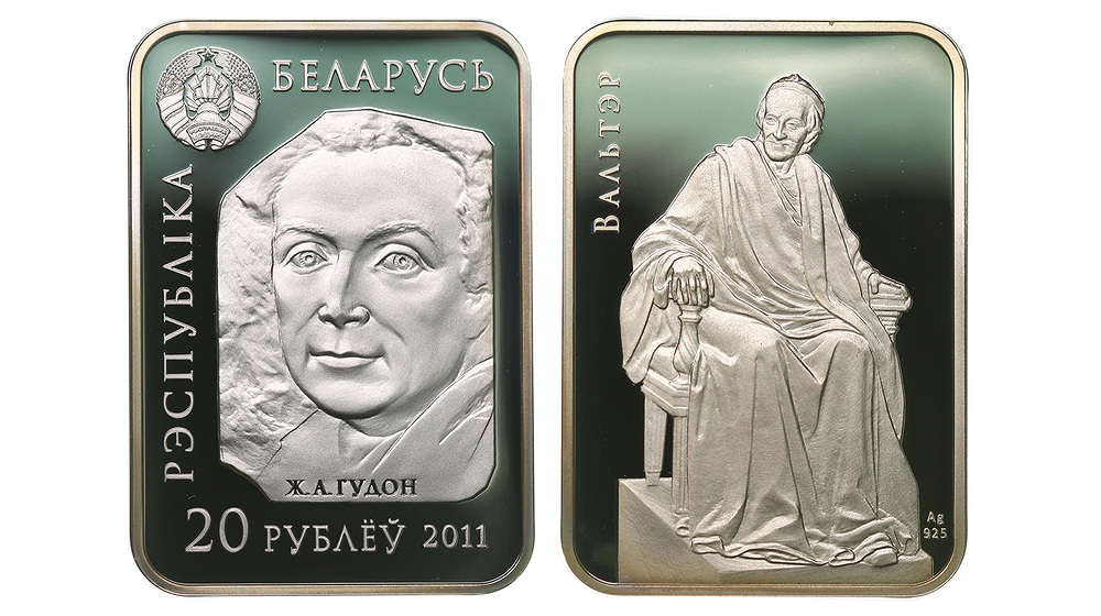 Серебро. 0,841 oz. 0,925. 28,28 г. "Вольтер". KM# 290. В оригинальной капсуле. С сертификатом. Следы хранения.