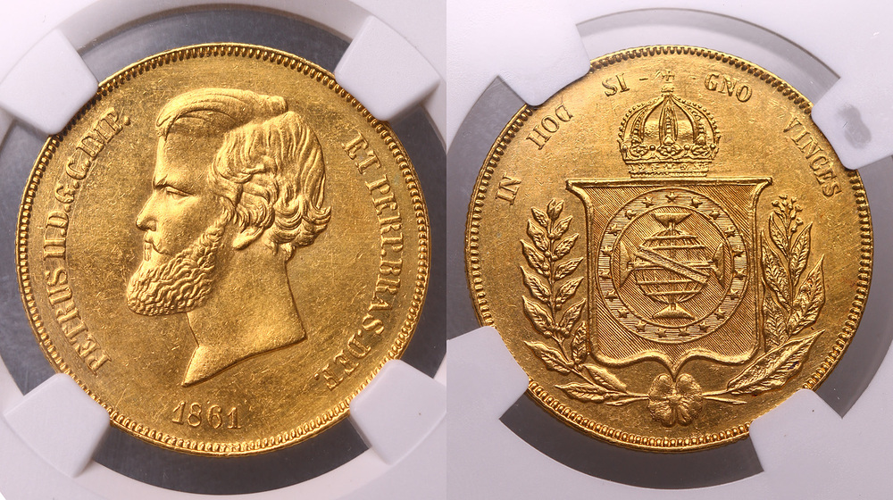 Бразилия. Педру II. 20000 рейс 1861 года. В слабе NGC UNC DETAILS.