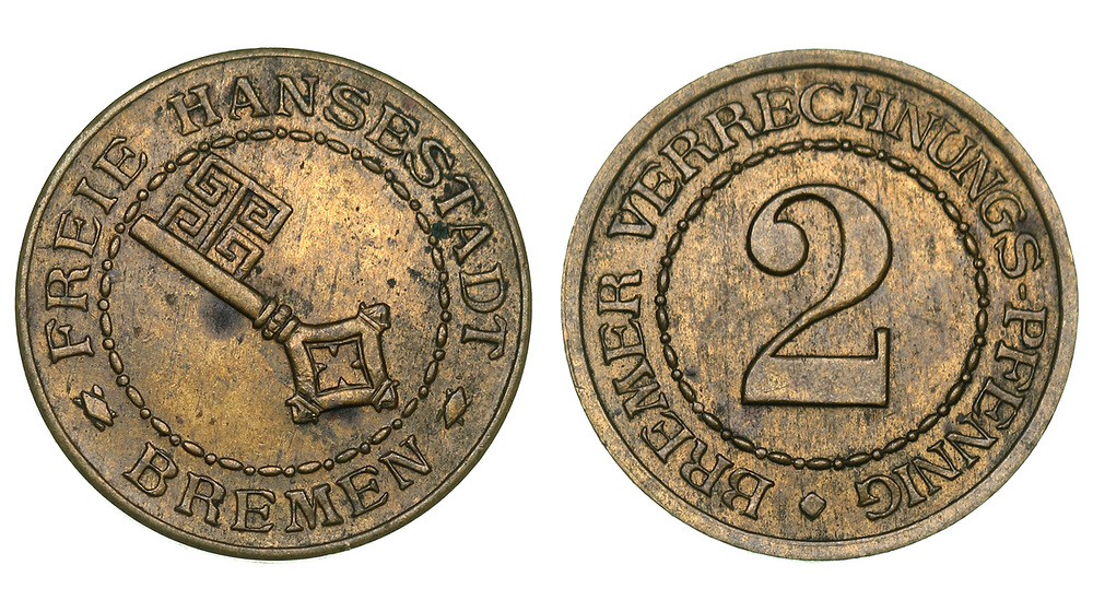 Германия. Бремен. 2 пфеннига 1918-1922 гг.
