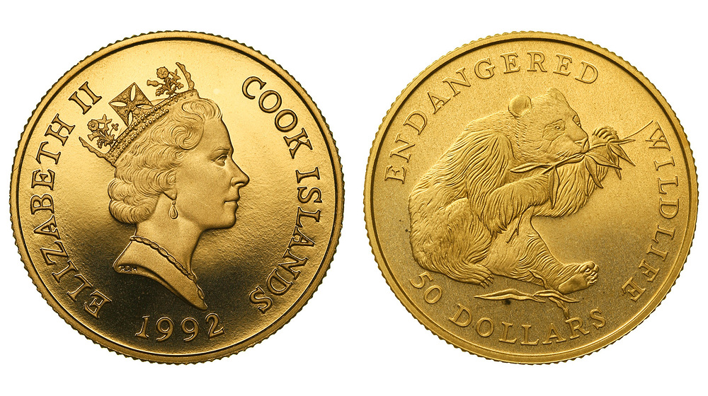 Кука о-ва. Елизавета II. 50 долларов 1992 года. Proof.
