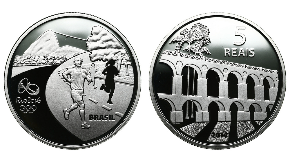 Серебро. 0,803 oz. 0,925, 27,0 г. "Олимпиада в Рио" Бег/Мост. КМ # 698. В оригинальной капсуле.