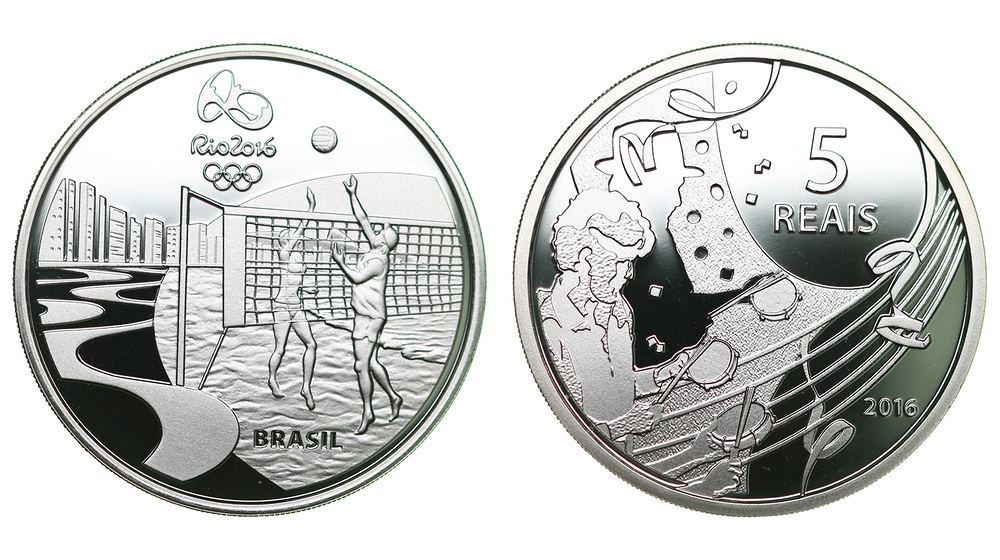 Серебро. 0,803 oz. 0,925, 27,0 г. "Олимпиада в Рио" Волейбол/1 музыкант с барабанами. В оригинальной капсуле.