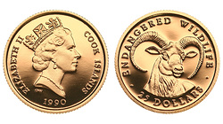 Кука о-ва. Елизавета II. 25 долларов 1990 года. Proof.